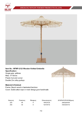 Item No.: NFWP-2123 Wooden Knitted Umbrella
