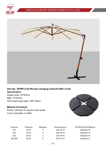 Item No.: NFWP-2120 Wooden Hanging Umbrella With Crank