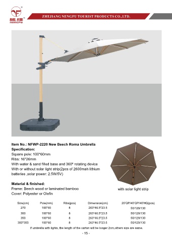 Item No.: NFWP-2220 New Beech Roma Umbrella