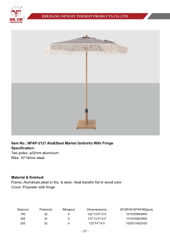 Item No.: NFAP-2127 Alu&Steel Market Umbrella With Fringe