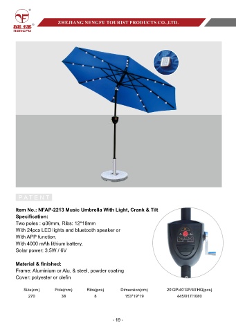 Item No.: NFAP-2213 Music Umbrella With Light, Crank & Tilt
