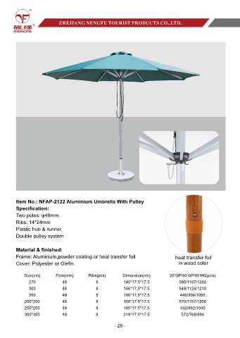 Item No.: NFAP-2122 Aluminium Umbrella With Pulley