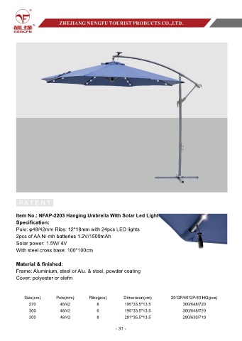 Item No.: NFAP-2203 Hanging Umbrella With Solar Led Light
