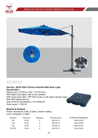 Item No.: NFAP-2201-2 Roma Umbrella With Solar Light