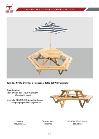 Item No.: NFWU-2433 Kid's Hexagonal Table Set With Umbrella