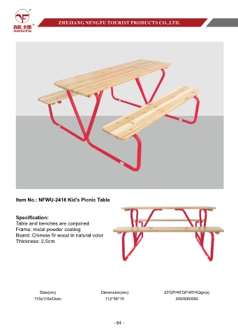 Item No.: NFWU-2418 Kid's Picnic Table