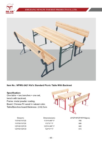 Item No.: NFWU-2421 Kid's Standard Picnic Table With Backrest