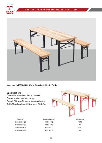 Item No.: NFWU-2422 Kid's Standard Picnic Table