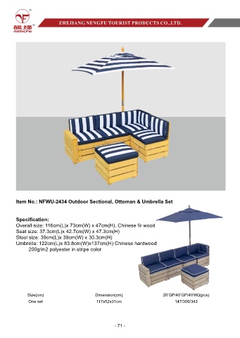 Item No.: NFWU-2434 Outdoor Sectional, Ottoman & Umbrella Set