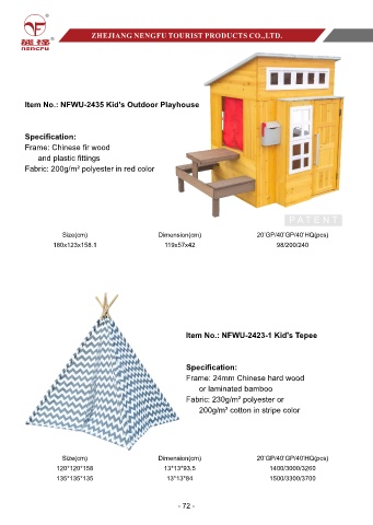 Item No.: NFWU-2435 Kid's Outdoor Playhouse